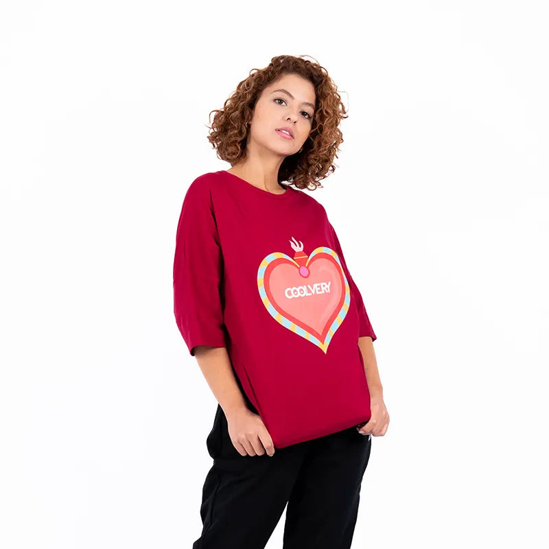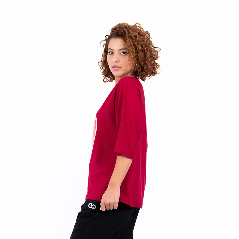 Camiseta Oversize de Mujer Bieber Pasion - Vinotinto